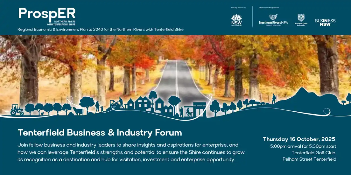 On Thursday 16 October 2025, the Tenterfield Golf Club will host the Tenterfield Business and Industry ProspER Forum. Organised by Business NSW Northern Rivers in partnership with the Tenterfield Chamber of Tourism, Industry and Business, the evening will bring together local leaders, business owners, and stakeholders to explore pathways for sustainable and prosperous development.