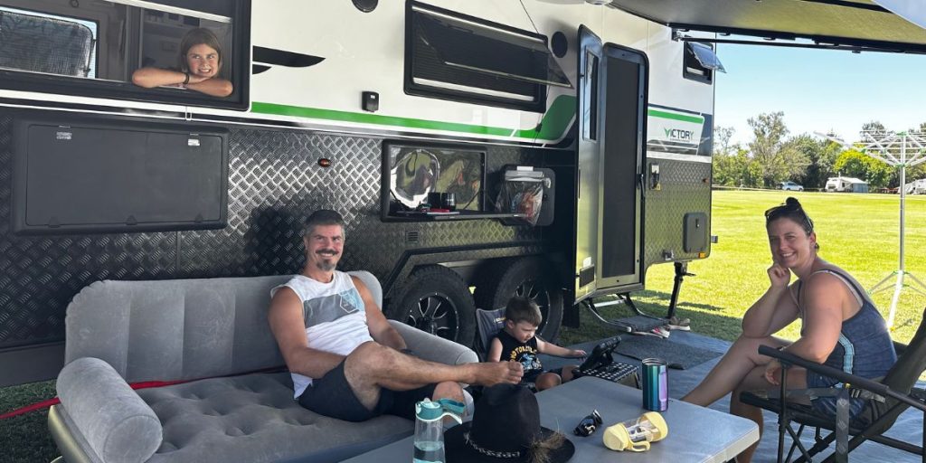 The family travelled from near Gympie but live on the road almost full-time, with gigs booked from Victoria to Queensland over the next six months.