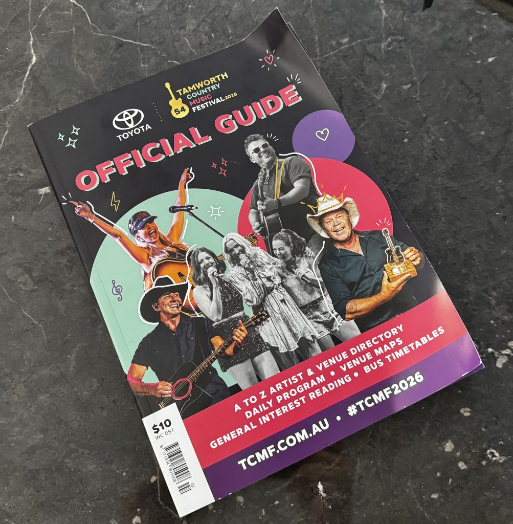 And of course, make sure you collect the Tamworth Country Music Festival Guide itself. For just $10, it is the ultimate keepsake of your TCMF26 experience. Dog-eared, scribbled on and well-loved by the end of the week, it becomes a time capsule of gigs seen, gigs missed and memories made.