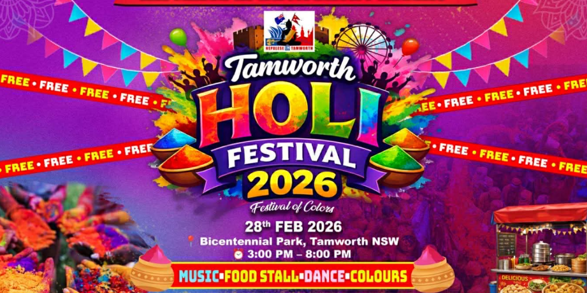 From 3 pm to 8 pm on Saturday, February 28, Nepalese in Tamworth will transform the park into a vibrant celebration of unity, music, dance and, of course, the iconic colour throwing that defines Holi, the Festival of Colours. What began as a small gathering among friends has now grown into a town-wide invitation to celebrate together.