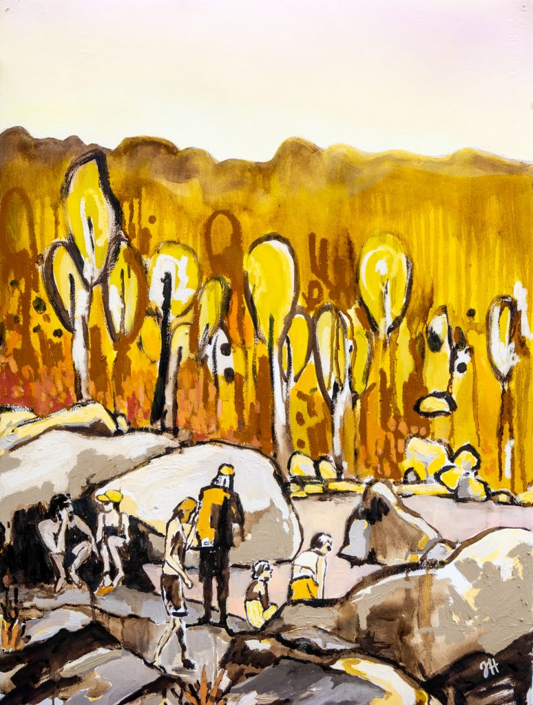 Hayes’ process often begins outdoors, gathering reference material through hikes, photographs and sketches of local places before returning to the studio.