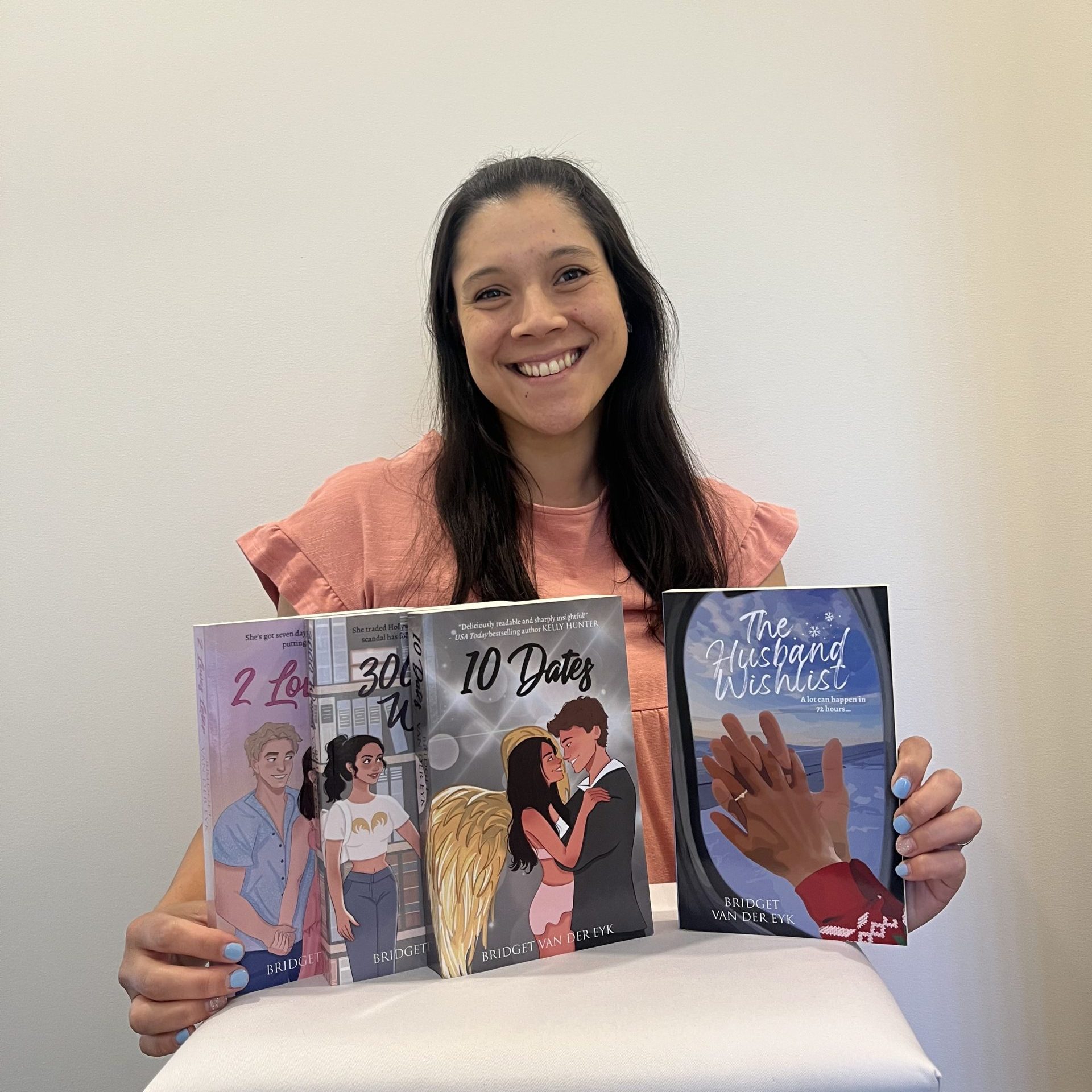 Bridget’s writing journey began during maternity leave in 2021, when she wrote her first book, 10 Dates, an adult contemporary romance described as having “Gossip Girl goes Hollywood” vibes.