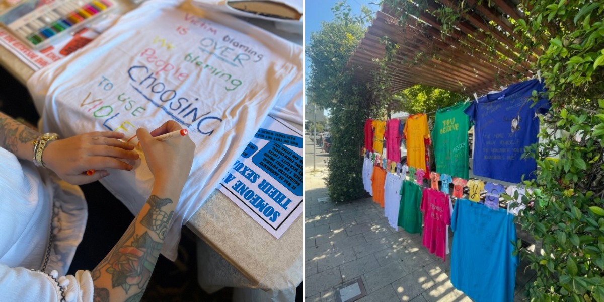 The initiative encourages participants to design t-shirts reflecting personal experiences, messages of hope or support, which are then displayed on a public clothesline as a visual statement against violence.