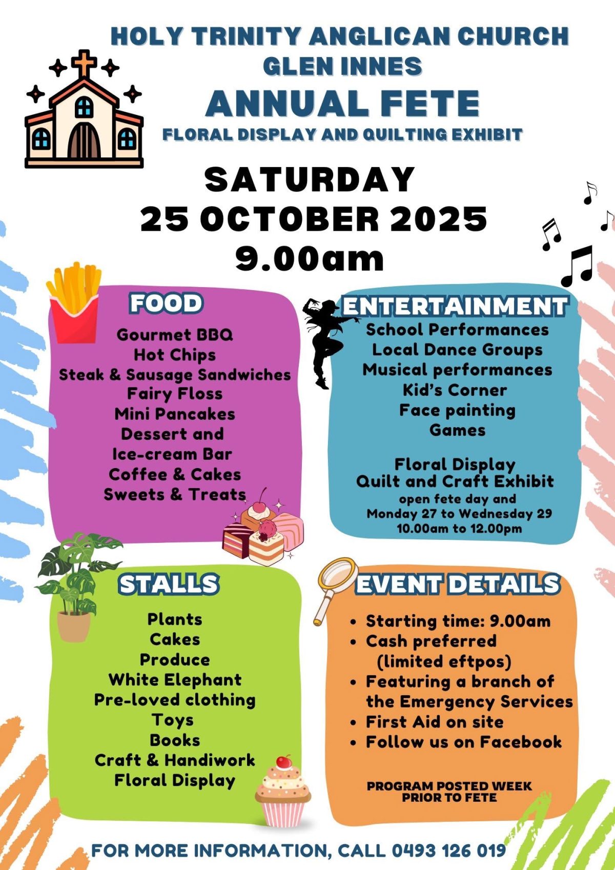 Holy Trinity Anglican Church, Glen Innes, Annual Fete, floral display and quilting exhibit. Gourmet BBQ, Hot chips, Steak and Sausage Sandwiches, Dessert and Ice cream Bar, Coffee and Cakes, Sweets […]